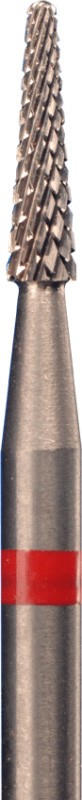 Твердосплавная зуботехническая фреза для финишной обработки сплавов из драгоценных металлов, хромокобальтовых, хромоникелевых сплавов, стали, а также для быстрой грубой обработки керамики, придания формы и контурирования. Фрезы большого диаметра можно использовать для обработки широких поверхностей, коррекции прикуса. Фрезы с тонким концом рабочей части удобны для работы между элементами конструкции. Конструкция режущих граней обеспечивает легкое врезание фрезы в металл и быстрое резание материала в условиях малого давления фрезы на поверхность. Благодаря этому фрезы могут применяться для врачебной коррекции цельнолитых и металлокерамических протезов в условиях клиники с использованием микродвигателя стоматологической установки, который не обладает такой мощностью, как зуботехнический микродвигатель.
