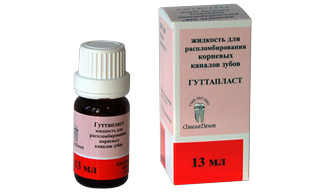 Перелечивание корневых каналов, ранее пломбированных гуттаперчей. В случаях повторного пломбирования корневого канала материалами с использованием гуттаперчевых штифтов возникает необходимость очистить его от гуттаперчи. Для этого применяют специальную жидкость для распломбирования канала, запломбированного гуттаперчей, облегчающую проведение подобных манипуляций. Жидкость также применяется в процессе пломбирования для смягчения гуттаперчи и для увеличения адгезии с пломбировочным материалом.
