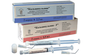 на основе гидроксида кальция. натрий фтор (только в составе «Кальципульпин - F») 2 пластиковых шприца по 2,5 мл,