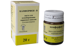 «Камфорфен-В» относится к пластичным твердеющим пастам. В состав материала введен целый спектр сильных антисептиков, таких как п-хлорфенол и камфора, входящих в состав классической формулы камфорофенольной пасты.