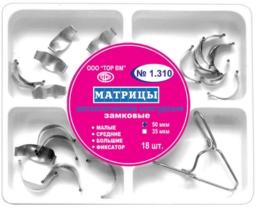 Матрицы металлические предназначены для разделения аппроксимальных поверхностей соседних зубов и контурирования пломб.